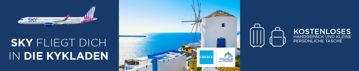 Entdecken Sie die Magie von Santorin, Mykonos und vielen weiteren Zielen mit den flügen von SKY express, verfügbar von Dezember bis August. Erleben Sie den Traum im Paradies der Ägäis!