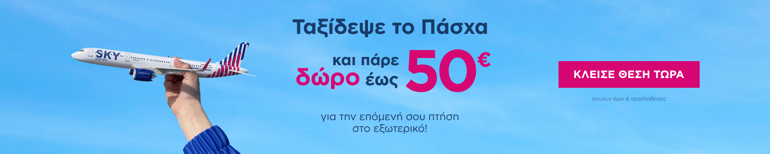 Δεν υπάρχουν αποτελέσματα πτήσεων που να ταιριάζουν με τα κριτήρια σας. Παρακαλώ αναπροσαρμόστε τα κριτήρια αναζήτησής σας.*Οι τιμές είναι διαθέσιμες για ταξίδια απλής μετάβασης εντός των τελευταίων 48 ωρών και ενδέχεται να μην είναι διαθέσιμες αυτήν τη στιγμή. Οι ναύλοι BLISS & BLISS+, Business Class, περιλαμβάνουν: 1 προσωπικό αντικείμενο, 1 χειραποσκευή έως 13 κιλά, 2 αποσκευές έως 32 κιλά η κάθε μία, ευέλικτες αλλαγές εισιτηρίων (+ διαφορά ναύλου αν προκύπτει), δωρεάν αλλαγή σε πτήση της ίδιας ημέρας (ισχύουν όροι και προϋποθέσεις), αποκλειστικό check-in counter, SKY Fast Lane, SKY Executive Lounge, προτεραιότητα στην επιβίβαση, δωρεάν Προεπιλογή θέσης κατά την κράτηση, κενή μεσαία θέση, προτεραιότητα στην παραλαβή αποσκευών.