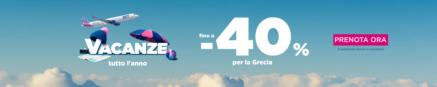 Approfitta fino al - 40% su tutti i voli SKY express per la Grecia! Prenota ora il tuo prossimo viaggio estivo o invernale entro il 28 aprile.